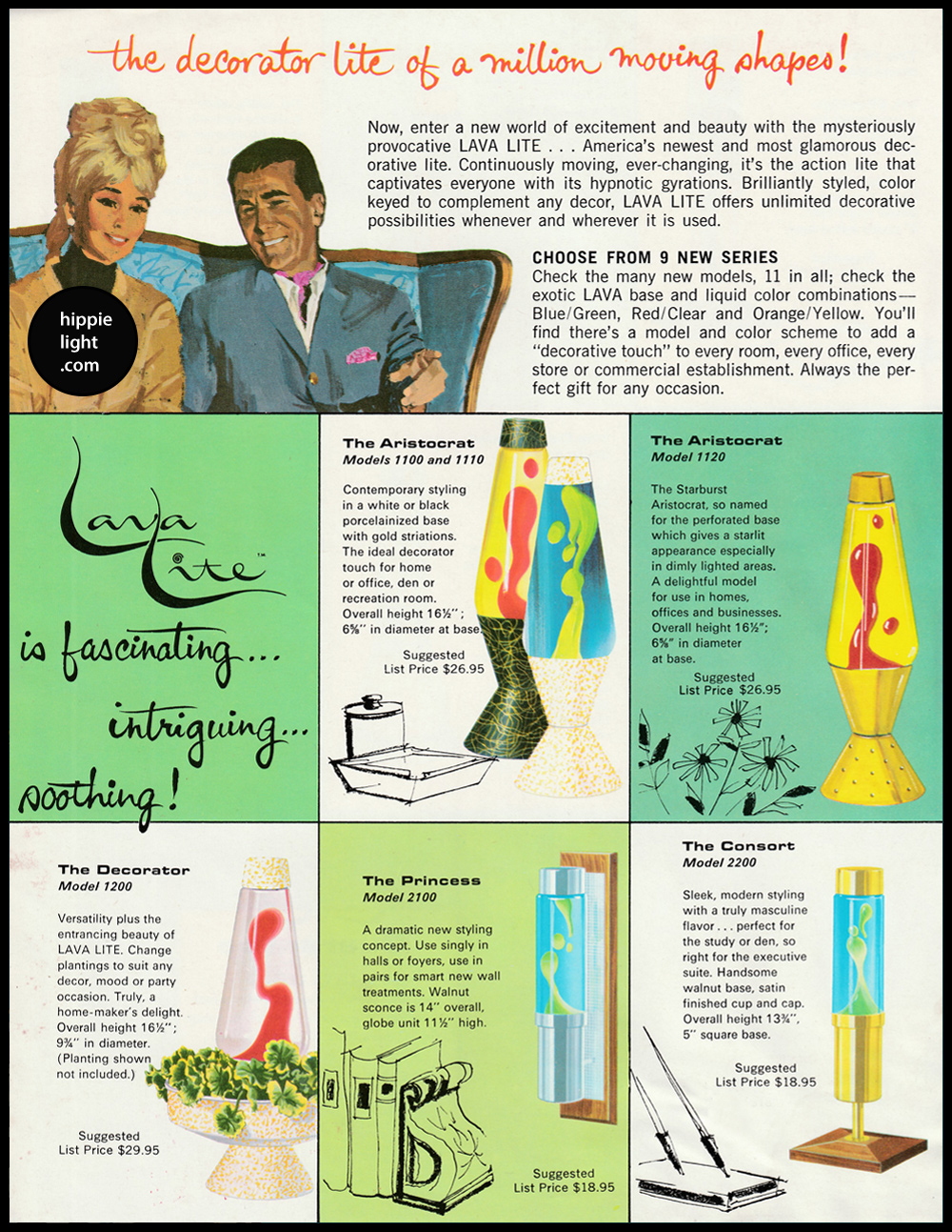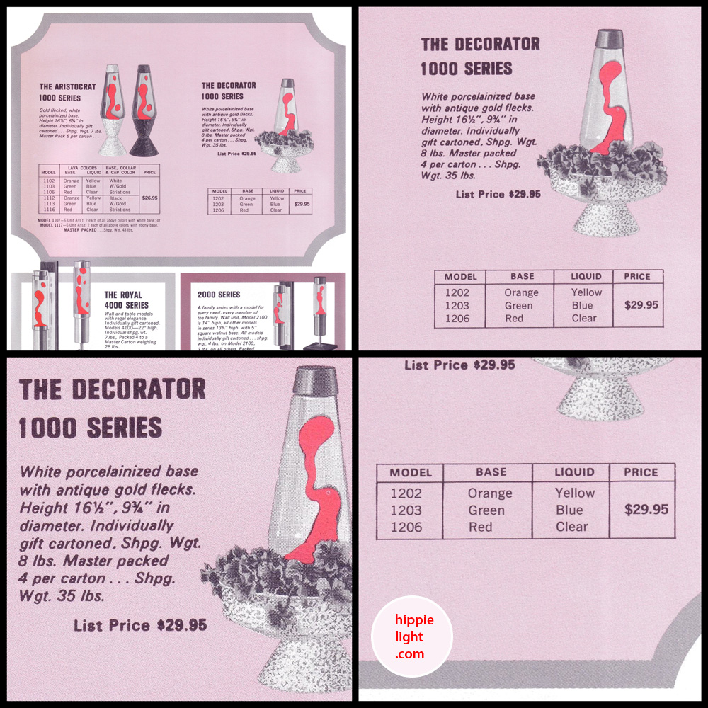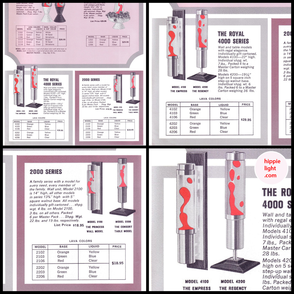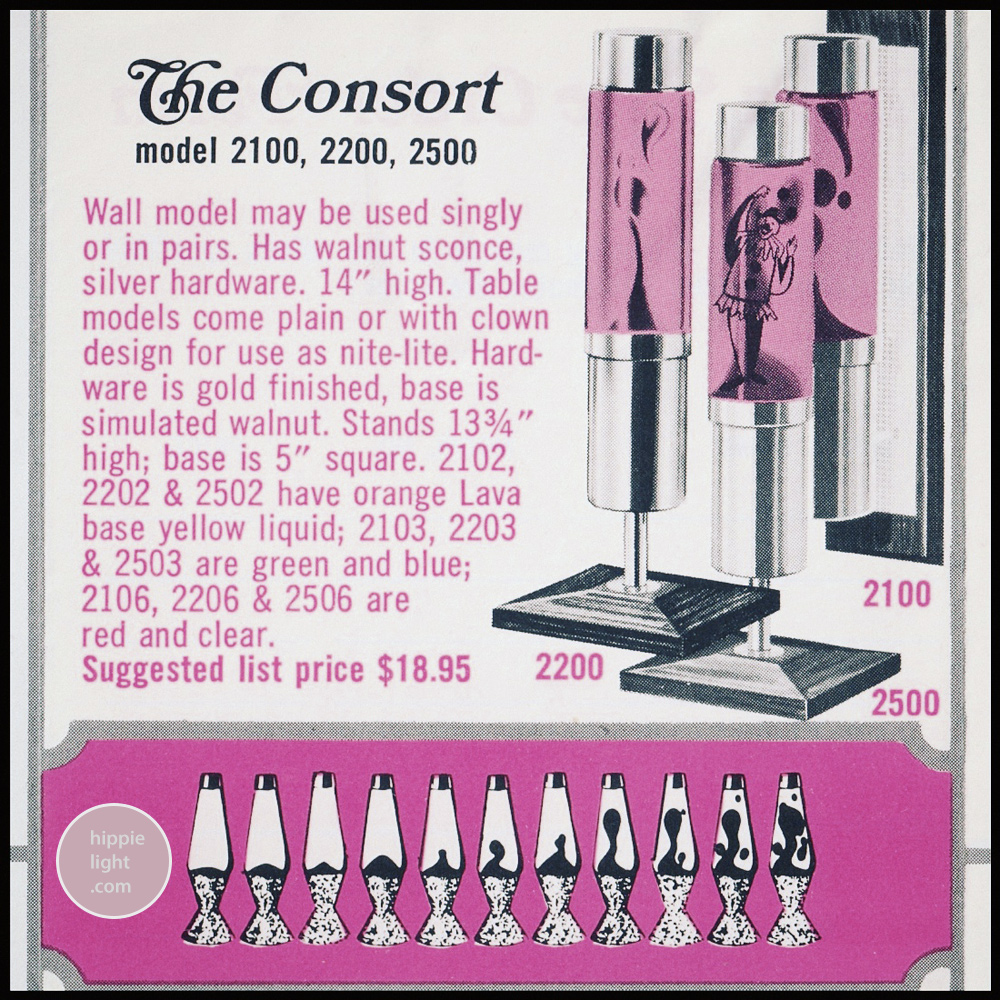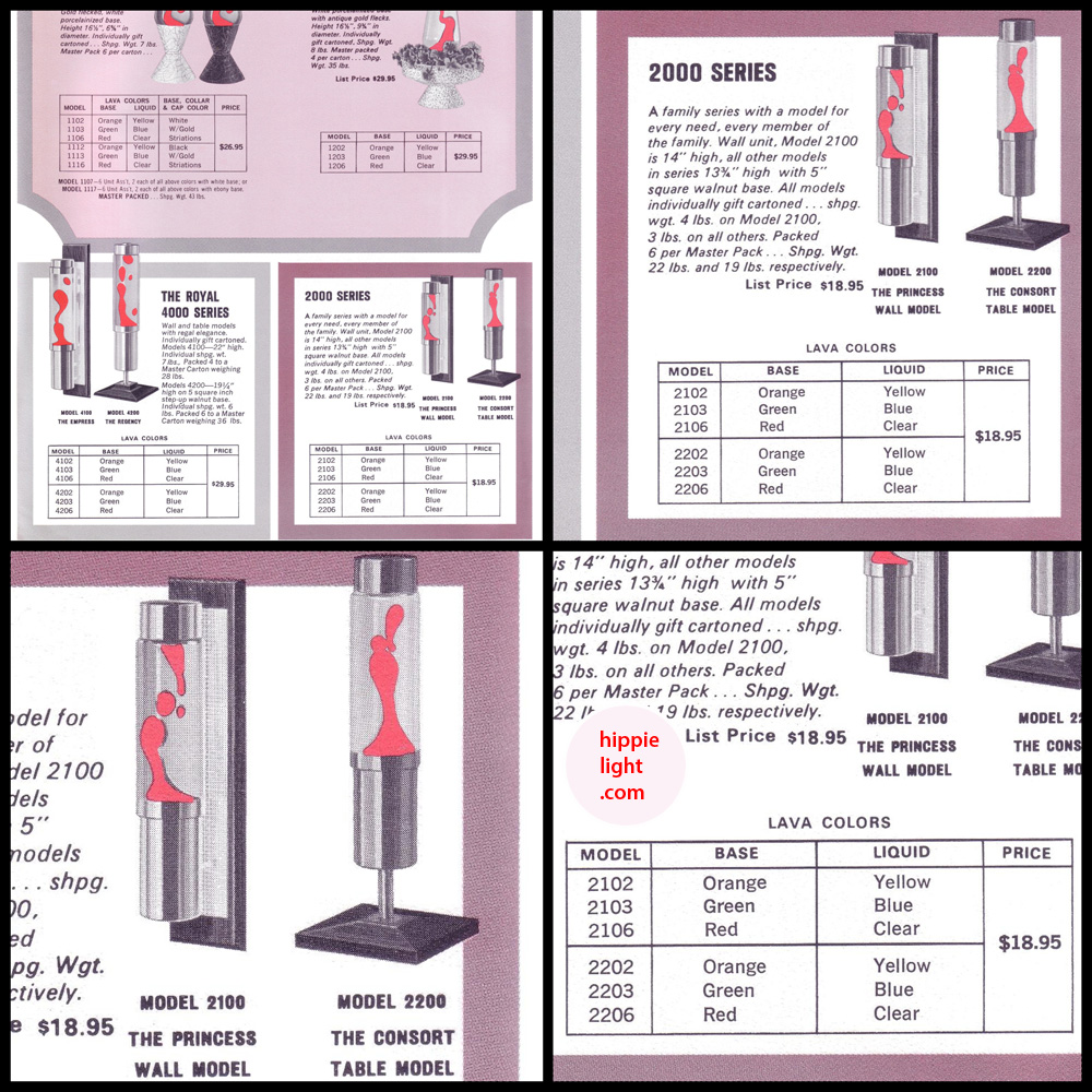 www.hippielight.com | Lava-Simplex's 2000 Series | The Consort lava lamp design & Its Variations ... Model Series: 2100, 2200, 2500