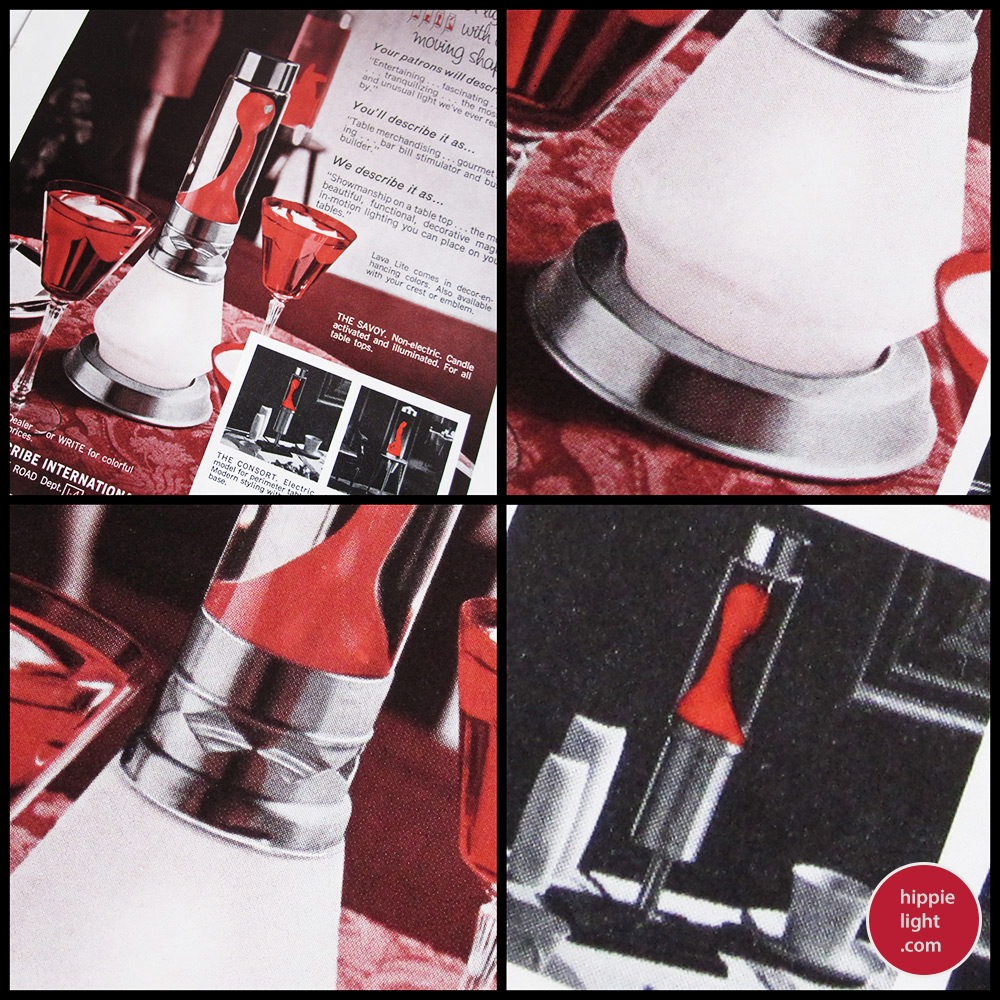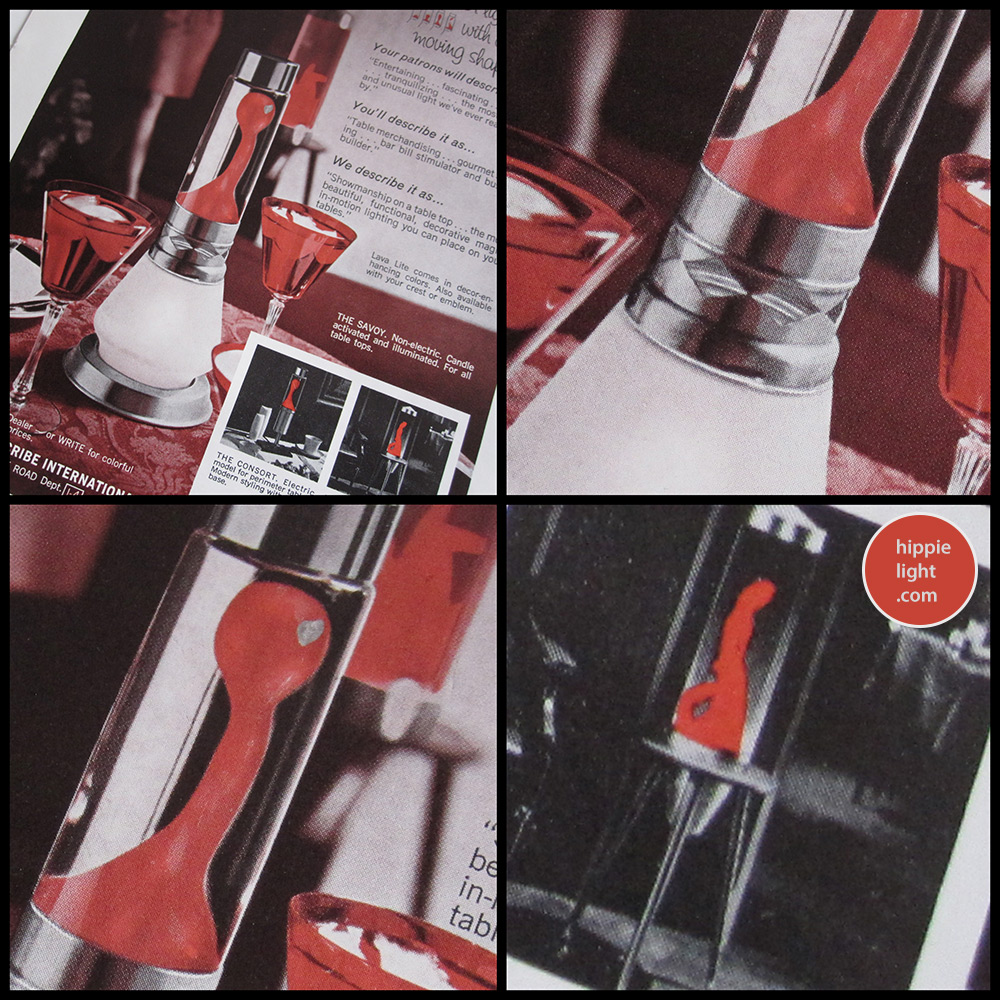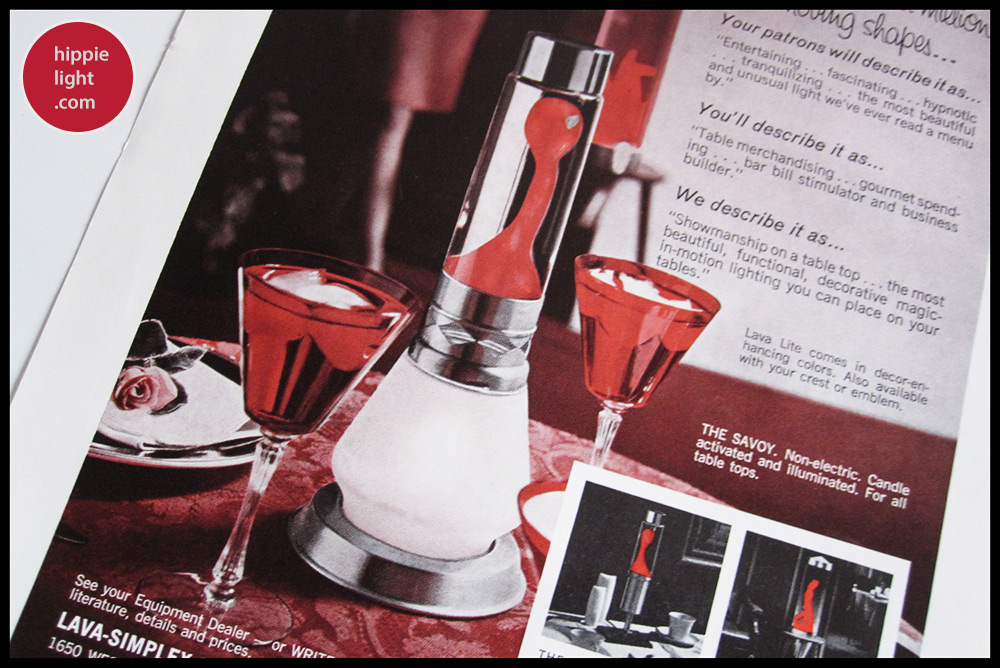 www.hippielight.com | The Vintage "Lava Lamp" Timeline | The Earlier Savoy with decorative glass and metal clip base.