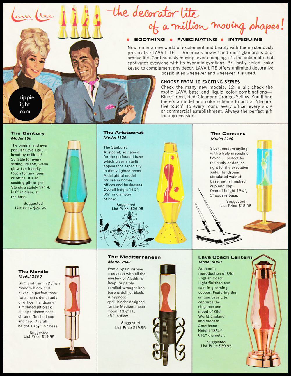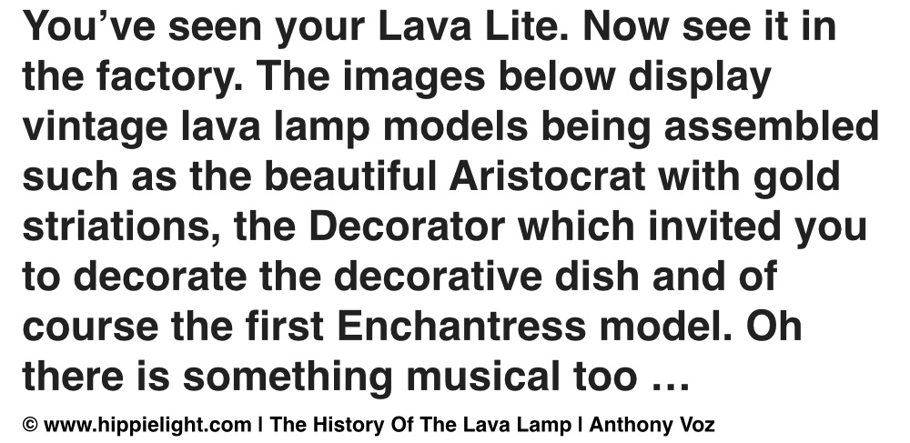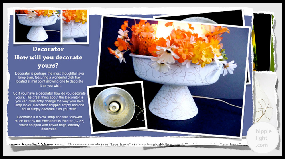Hippielight.com has been dedicated since its very first day to the history of vintage "lava lamps" and the original vintage designs relating to the 1960s & 1970s. Hippielight documents the legacy of vintage "lava lamps" from all over the world, the vintage designs and the designs that are loved by everyone still today, decades after their release. From Century, to Enchantress Planter, to Carlisle, to Continental, to Decorator, to Aristocrat, these vintage manufactured "lava lamps" are still loved by thousands today and are represented here through photography and nostalgic memorabilia in collections and displayed on www.hippielight.com.